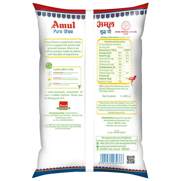 - Amul Ghee has delicious taste, perfect granulation and rich aroma.