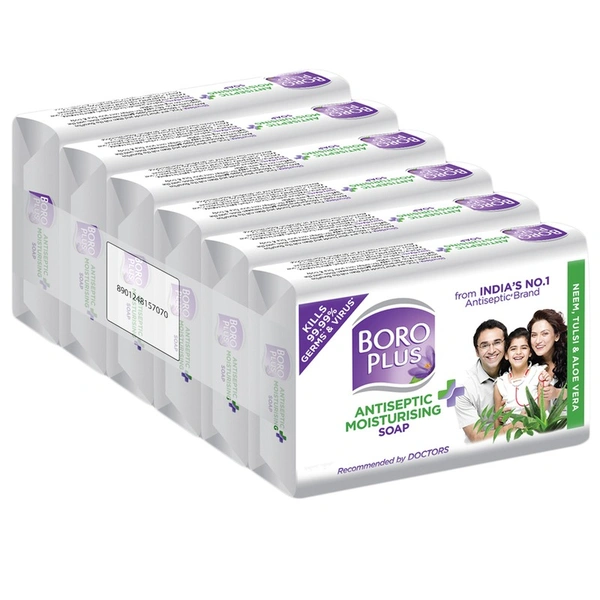 BoroPlus Antiseptic + Moisturizing Soap, enriched with natural, antiseptic Herbs like Neem & Tulsi kills 99.99% germs without drying the skin. Aloe Vera moisturises your skin making it soft & smooth. Complete protection for you and your family. Recommended by Doctors & free from harmful chemicals, it is formulated to soothe and soften your skin as well as to keep it clean and protected.
