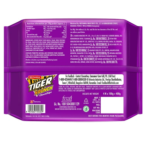 Britannia Tiger Krunch Chocochips Biscuits: