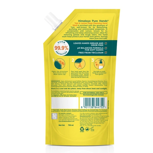 Himalaya pure hands purifying tulsi hand wash, power of tulsi has antibacterial protection from 99. 9 percent germ. Skin friendly ph. soft skin.