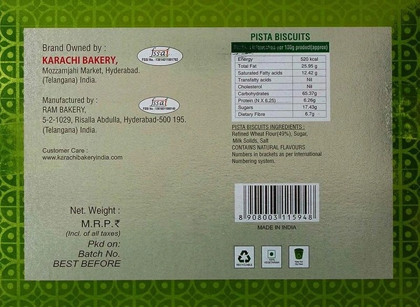 Rich Pistachio Flavor: Karachi Bakery Green Pista cookies are infused with the delicious taste of pistachios, giving them a rich and nutty flavor.